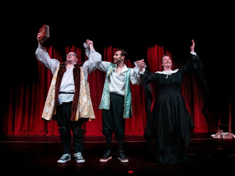 How do you introduce William Shakespeare’s complex plots and characters to an audience used to scrolling through content at lightning speed? Three brave actors have a solution — compress Shakespeare’s 37 plays and 154 sonnets into one evening’s length of entertainment. The result? A fun, fast-paced, and frenzied evening — Shakespeare like you’ve never seen before. McLean Community Players’ The Complete Works of William Shakespeare (abridged) is a joyfully irreverent take on the canon.
