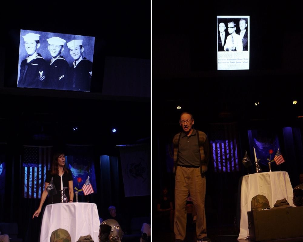 In the lobby, exhibits of photographs and memorabilia, as well as a display table where the book Voices from Vietnam, by military author Bruce “Doc” Norton, are on sale. “Doc” himself tells his Vietnam service story as the first character in the production. Norton collaborated with Kantrovich in writing the play, augmenting the contents from his own research.