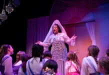 Speaking of growth, some other caveats include that the “South” of it all could have been worked a bit more. There were some spotty accents throughout and more “oo” and “ee” vowels could have been worked, though Sheehan as Shelby and Wraback as Beth showed to be the best. But the heart was still there. And a college theater department doesn’t have everything a regional theater would; we still see some actors finishing making their exits offstage with the way the set is built. But largely, the tech was done very well, especially the fluorescent lighting by Jason Aufdem-Burke, the smartly chosen pop music–filled soundscape created by Ian Vespermann, and the colorful, ever-changing costumes for each scene by Stephanie Parks.
