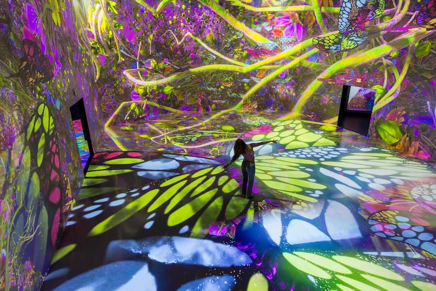 A couple of flights down, the main floor of the art showcase, known as the Immersion Gallery, caught guests’ attention with its display of vibrant colors and images of nature. The display called PIXELBLOOM: Timeless Butterflies enveloped the space with the fluttering of delicate butterflies and the blossoming of flowers. The floor and walls seemed to come alive, casting radiant hues of pink, purple, blue, and yellow, evoking the warmth and rejuvenation that comes with springtime. Compared to the world outside the studio, it felt as though attendees were transported to a digital dream world — a serene, tranquil escape that provided not only aesthetic pleasure but also a sense of peace and creativity.