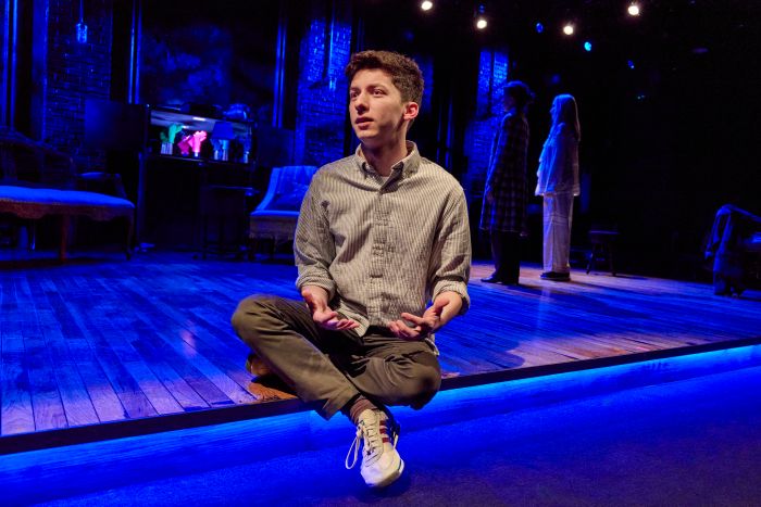 In his stellar portrayal of Joshua, Andrew Barth Feldman proves once again that he’s one of the most empathetic and compelling young actors to grace the New York stage (and screen). He delivers the laughs, affection, and torment of his sensitive character, manifesting a full range of emotions, registering his thoughts and feelings in his voice, facial expressions, and body language, exploding with rage when he can no longer contain himself, and insightfully appreciating his family for who they are and what they’ve meant to him. The masterful Joanna Gleason turns in another superb performance as Renee, assuming a sophisticated accent and demeanor (in contrast with her character’s actual background), with lithe and graceful movements, a questioning mind, an appreciation of the arts and Paris, a readily legible love for and pride in her grandson, and an acceptance of her approaching death, until her hidden problem surfaces and she unexpectedly lashes out. Rounding out the cast as Ellen, a self-described “bitch,” Jeanine Serralles is less persuasive in her over-the-top melodramatic characterization, prone to histrionics, making faces, flinging her arms out, feigning outbursts of crying, manically rubbing her thighs, affecting a bad New York accent in imitation of her parents, and generally chewing the scenery, in a portrayal that lacks the emotional depth and control of the outstanding Feldman and Gleason, and failed to engender my sympathy.