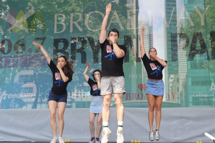 Broadway in Bryant Park plays on Thursdays, through July 31, 2025, 12:30-1:30 pm (the lawn opens at 11 am), on the stage at Bryant Park, 41st Street and Sixth Avenue, NYC. Admission is free and no tickets are required.
