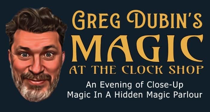 If you’re in search of a jaw-dropping experience that will keep you guessing, gasping, laughing, and joining in on the non-stop fun and surprises, be sure not to miss Greg Dubin’s delightfully uncanny Magic at the Clock Shop. As someone who’s reviewed the acts of many top-notch conjurers from around the globe, I can honestly say that I’m still trying to figure this one out.