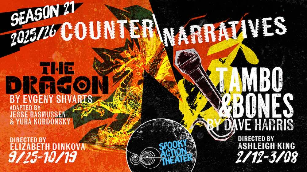 Spooky Action Theater presents its 21st season with productions of two plays that are boldly theatrical, entertaining, and resonant. In her third season as Artistic Director, Elizabeth Dinkova directs a new adaptation of The Dragon by Evgeny Shvarts, a banned 1940s political fairytale. Dave Harris’ Tambo & Bones, a provocative and hilarious Off-Broadway hit, will be directed by 2020 Helen Hayes Award Winner Ashleigh King (Keegan Theatre’s Legally Blonde). In addition, Spooky Action’s season will include developmental readings and workshops through its New Works in Action program, and a return of its popular Cabaret Series featuring new acts by local talent.