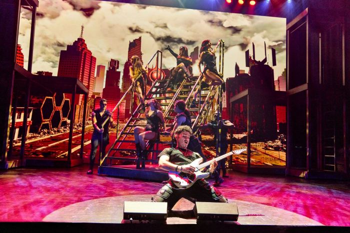 In fact, it’s more of a Las Vegas-style spectacle, with scantily clad show girls in tacky S&M costumes (by Giuseppe Magistro) and less exposed men (in black shirts and pants, and later dressed as gladiators, with Lord Nil’s costumes styled by Vanessa Leuck), who ramp up the outdated sexism, machismo, and concept of Lust. Together they bind and blindfold him, dance awkwardly out of sync (choreography by Stefano Alessandrino), and generally extend the running time of the ill-devised show, which clocks in at a little over an hour (though it feels like an eternity in hell, with no chance of escape).