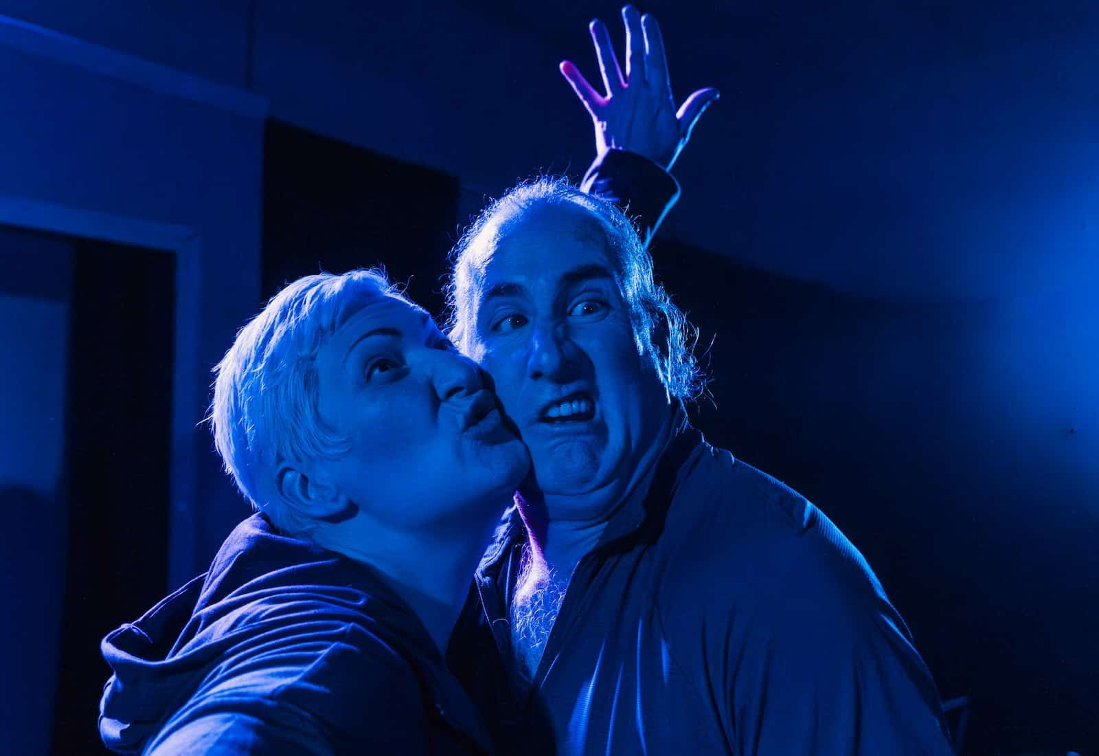 Hanging over the shoulders, quite literally, of the story’s hopeful lovebirds were Jil’s Alter Ego, played by Aubri O’Connor, and Ted’s Alter Ego, played by Terry Heffernan. A steady pulse of absurdity and one-upmanship, this delightful duo settled into a groove as the wine began to flow for their corporeal selves. Heffernan’s Alter Ted kept his energy revved up to 11 pretty much the entire time with a mischievous grin and perpetually arched eyebrow. O’Connor’s Alter Jil delivered enough delightfully witty and casual one-liners to steal the show. Really finding their rhythm together in the latter half, many of my favorite parts of the production came from the Alter Egos’ bickering set against (or sometimes on top of) Jil and Ted’s fifth date on the couch below.