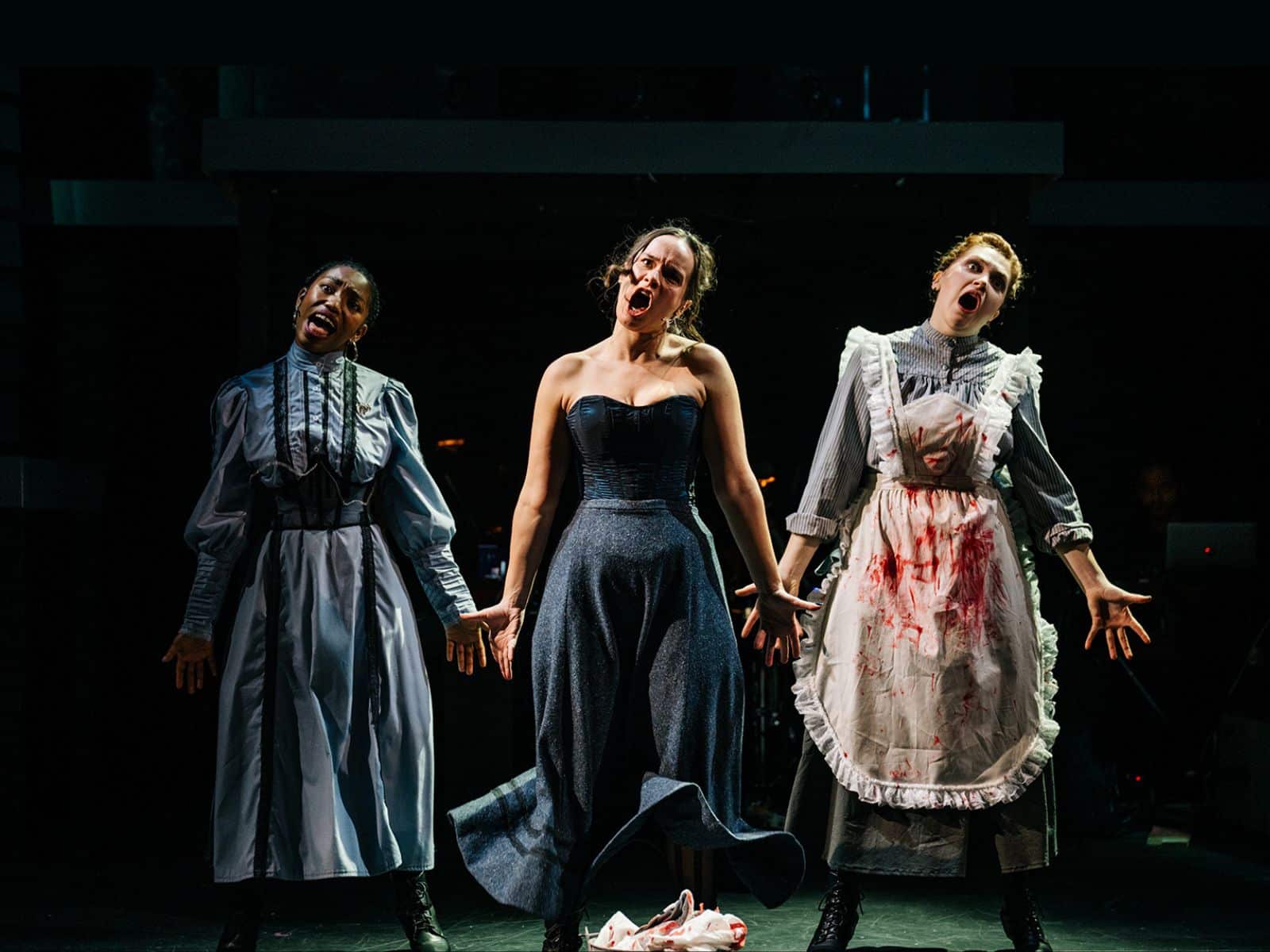 Scenic designer and technical director Josh Sticklin provides a clever, versatile set — watch as massive columns shift from interior to exterior spaces, transforming into reflective surfaces that mirror the show’s shifting moods. Costume designer Logan Benson deftly evokes the rigid elegance of late-Victorian fashion before subverting it with raised hems. Without spoiling the final costume transformations, suffice it to say that they, along with the escalating ferocity of the score, compel us to confront Lizzie Borden’s enduring resonance with contemporary audiences.