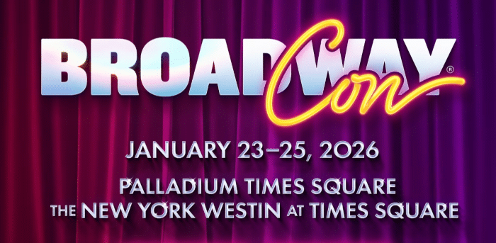 BroadwayCon takes place January 23-25, 2026, at Palladium Times Square, 1515 Broadway at 44th Street, and The New York Westin at Times Square, 270 West 43rd Street, NYC. For tickets (priced at $90.48-1122.38, including fees), go online.