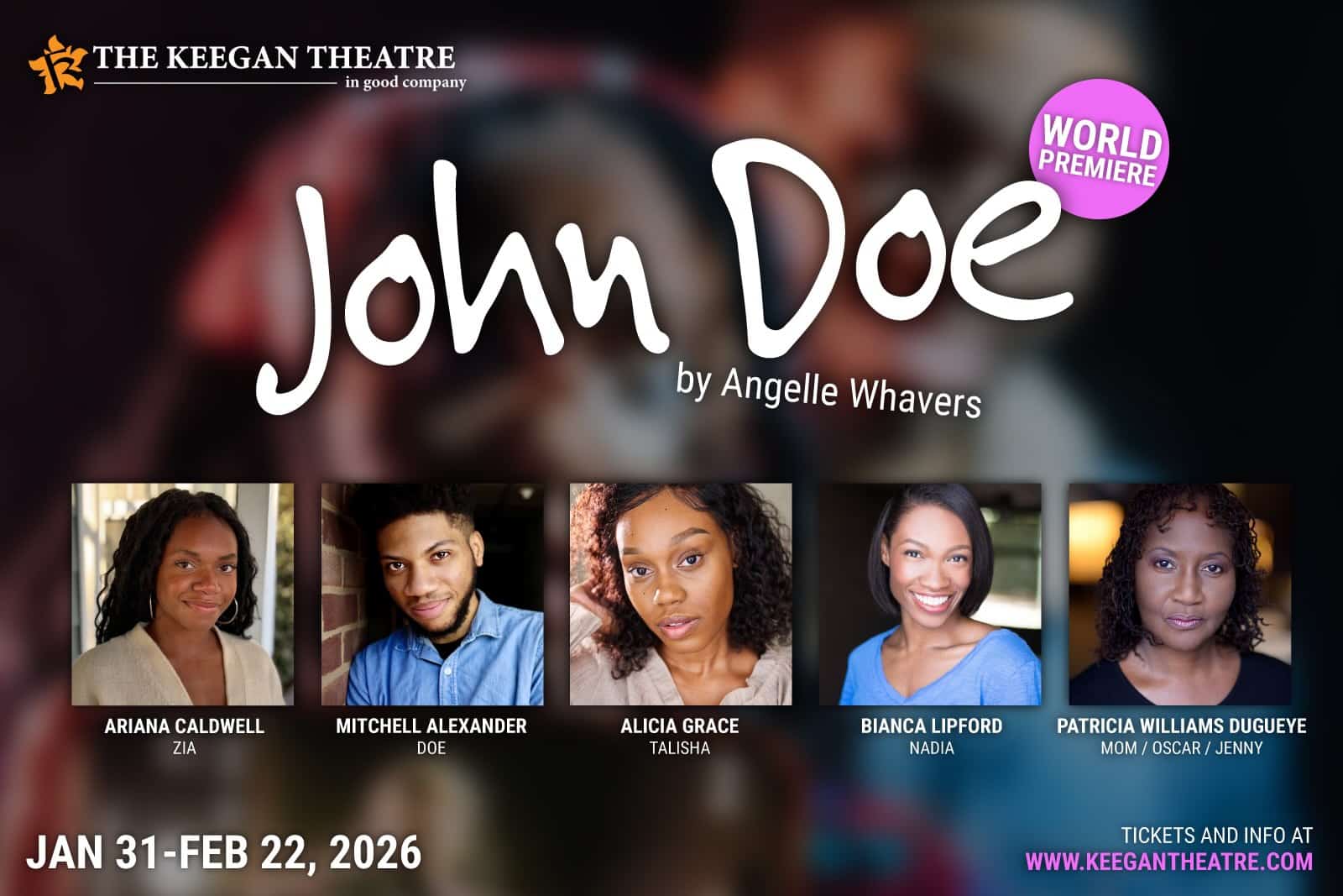 The Keegan Theatre is pleased to announce the cast and team of John Doe by Angelle Whavers, the first of two World Premieres taking the Keegan stage in early 2026. Commissioned and workshopped by Keegan’s Boiler Room Series (BRS) initiative for new works, this mainstage production of JOHN DOE reflects the realization of BRS’s mission to shepherd bold new works by exciting playwrights through a unique pipeline process, from napkin notes to fully staged productions.