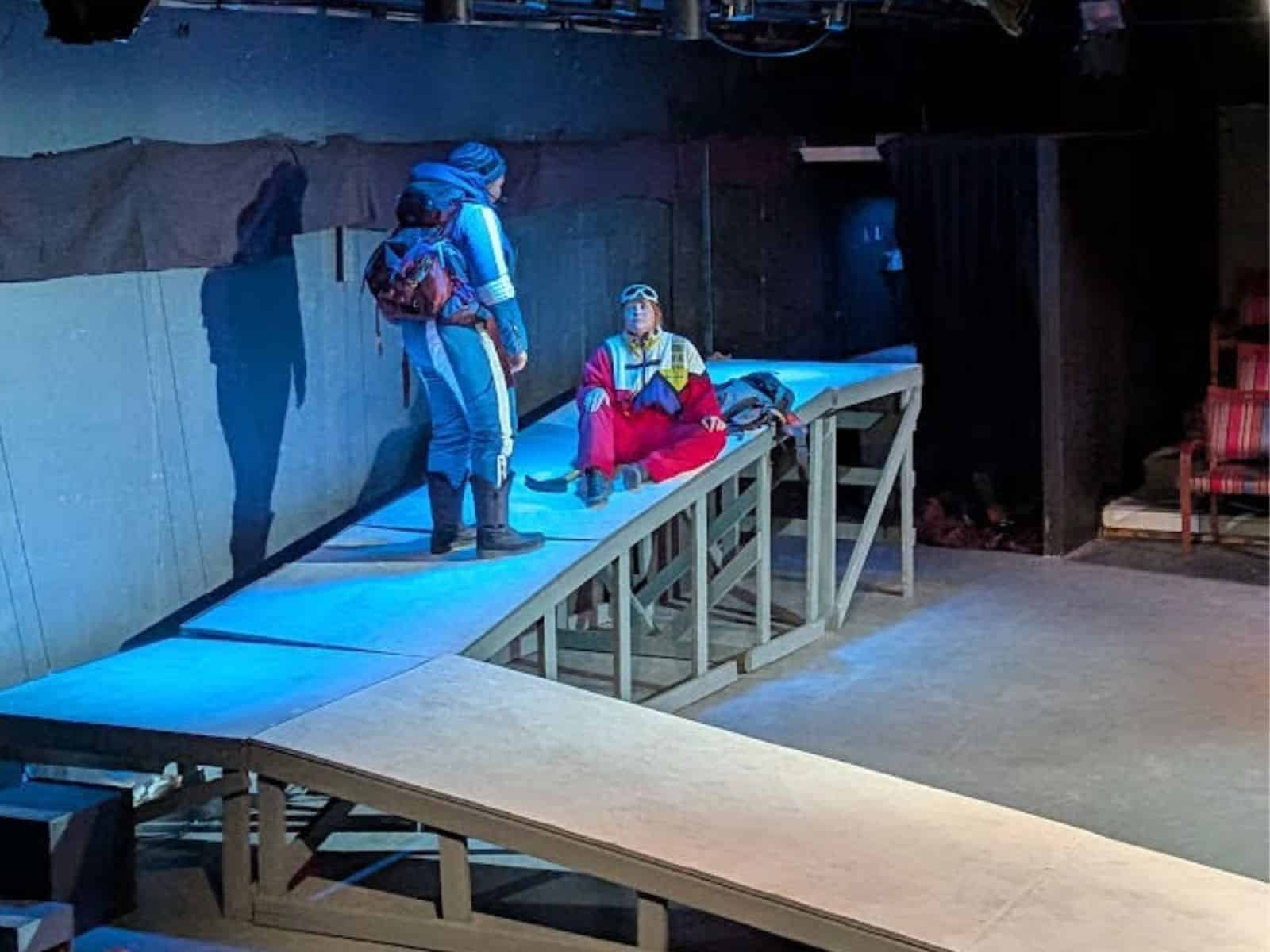 This three-person cast did an excellent job conveying both the perils of the environment they find themselves in and their heartwarming relationships. Raynes portrays the Climber’s conflict with a vast emotional range, giving the audience a real glimpse into the decisions and doubts she faces throughout her journey. Eadie shines as the Manager, both of base camp and the journey, jumping in as an imaginary interviewer, a musician, and the manifestation of the Climber’s fears. Spilsbury delights as the Partner, gracefully portraying with raw emotion the love and anxiety they feel for the Climber.
