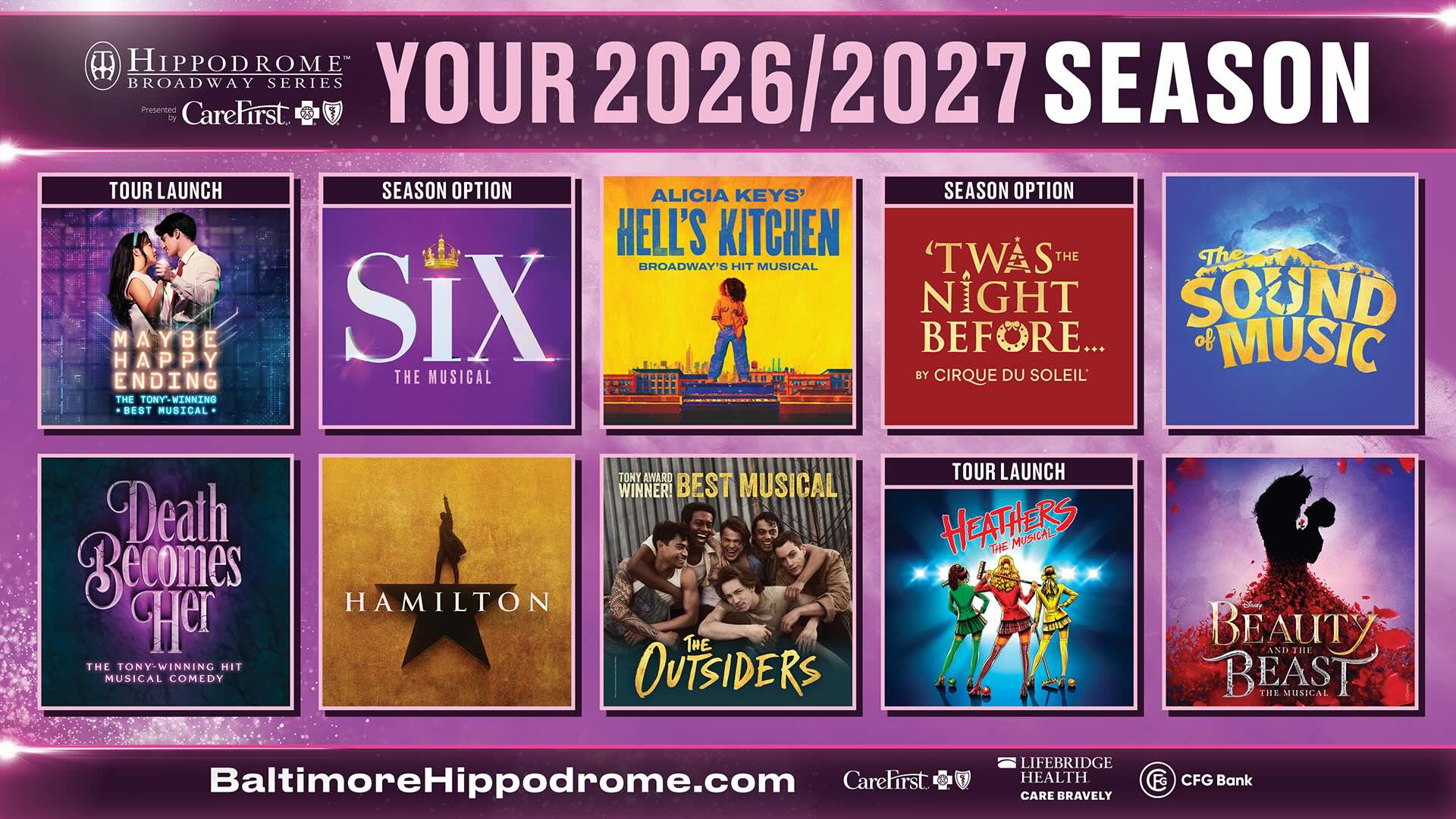 “This season reflects everything we strive to bring to Baltimore: bold new voices, iconic stories, and the very best of touring Broadway,” said Ron Legler, president of the France-Merrick Performing Arts Center. “We are also proud to continue launching national tours from our historic Hippodrome Theatre this season, further solidifying Baltimore’s role as a home for Broadway beyond New York. Baltimore continues to be the destination for touring productions, and that success is made possible by the passion of our audiences and the loyalty of our subscribers. Their continued support allows us to bring world class theatre to the Hippodrome year after year.”