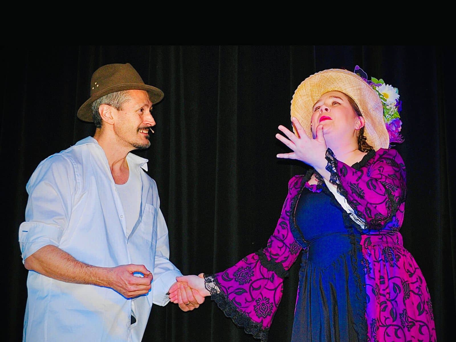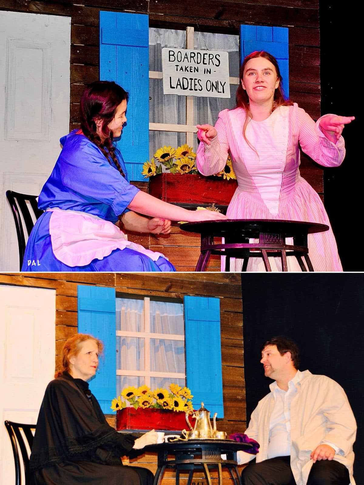 Steimel, who has appeared in many musicals, tunefully set an old-timey tone when her character Ida sang “All That Glitters Is Not Gold.” A half-dozen other songs were artfully accompanied by Roddy’s tickling the ivories in the style of an old music hall. Rachel Scott, as the sincere Nellie, adds a nostalgic touch when she muses musically about “The Old Cuckoo Clock That Hangs Upon the wall.”