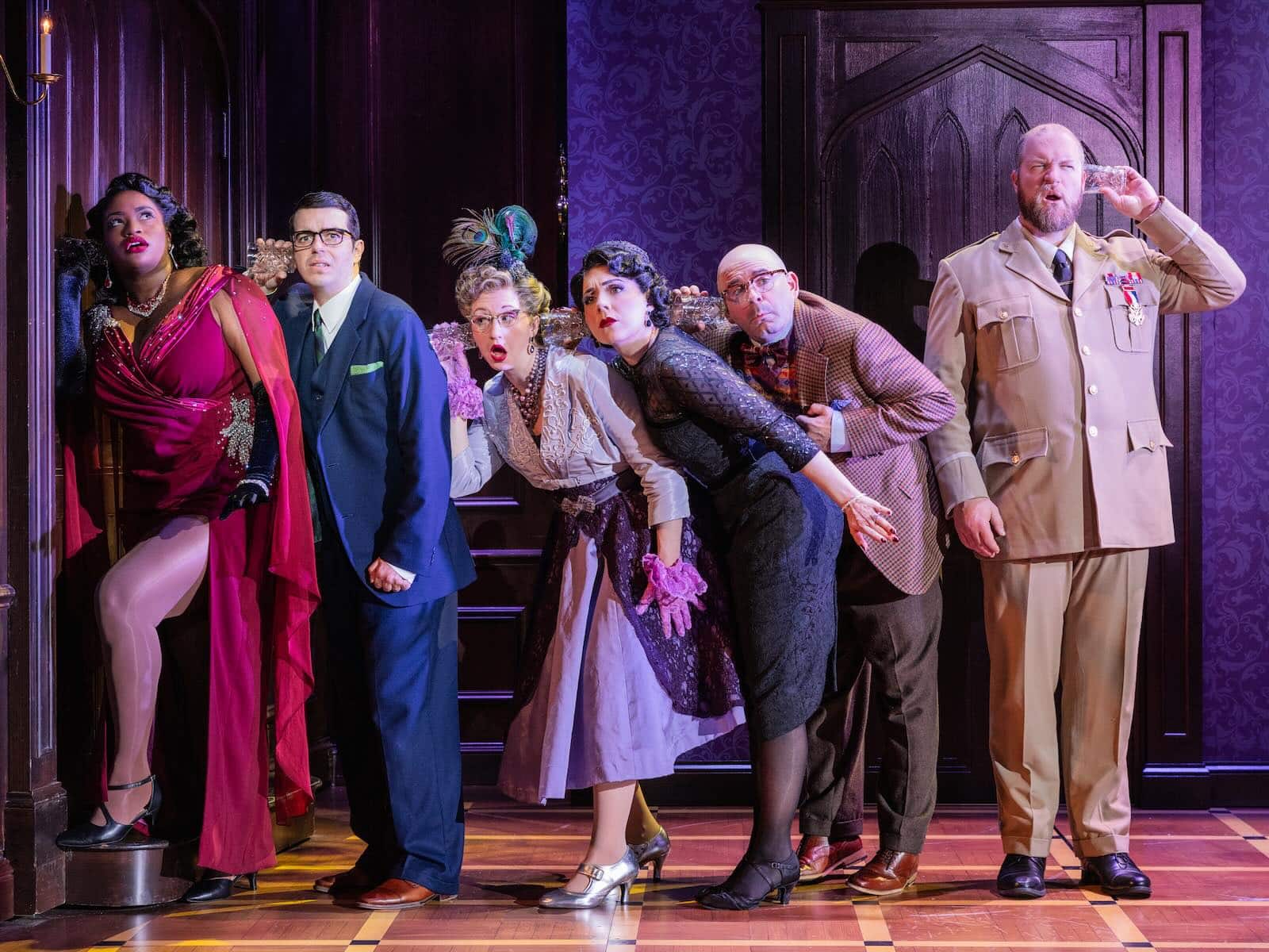 Farce hardly begins to describe the organized chaos of Clue Live on Stage. This adaptation of Jonathan Lynch‘s 1985 film, which brought the iconic board game to life, shows why the franchise has been tickling our hearts since 1949. Clue understands that a game needs just enough rules to guide its players’ imaginations. Its macabre setting and stylized characters allow even your stiffest relative to embrace a new reality where silliness ensues as murderers run loose. Within the confines of these well-worn characters, and under the direction of Casey Hushion, the spectacular cast of Clue Live on Stage! strike the perfect balance between synchronized gimmicks and unbridled buffoonery.