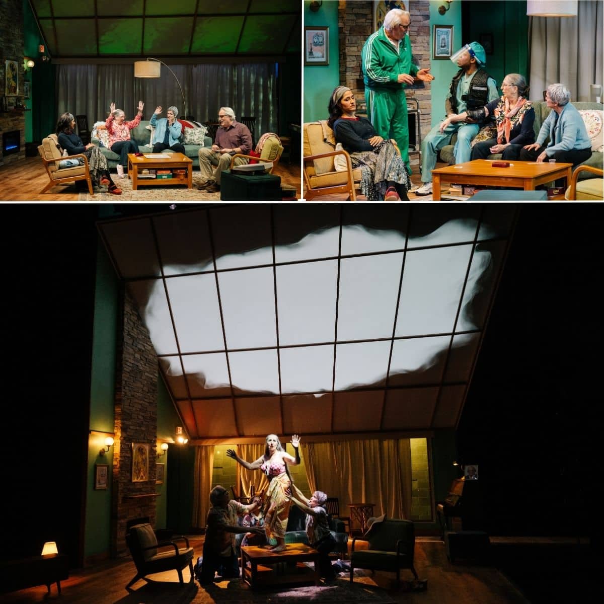 The well-appointed sitting room looks comfy and idyllic (the scenic design is by Misha Kachman in calming tones of magenta, turquoise, and tan, and through the windows can be seen a Southern California landscape with desert vegetation). Little do these convivial seniors know that in the remaining days of their lives they will face the literal end of days — the time prophesied in the Hebrew Bible and the time promised in the title of Ali Viterbi‘s astonishingly stirring play, The World to Come. And then the world as they and we know it will be over and gone.