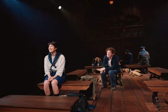 Rounding out the featured cast is Aaron Serotsky masterfully appearing in multiple roles as Marcel’s father Charles, who is asked to escape with them but chooses not to flee again; his cousin Georges, who enlists him to take the children on the train and plans to meet him halfway, with another group of kids, and to take over the mission of getting them safely to the Swiss Alps (but where is he?); a French-born Nazi guard who enters their compartment, interrogates them extensively, searches all their bags, and examines their papers for a lengthy period, but doesn’t fully open or eat their mayonnaise sandwiches (with good cause); and a private who will serve with Adolphe during the war in Vietnam.