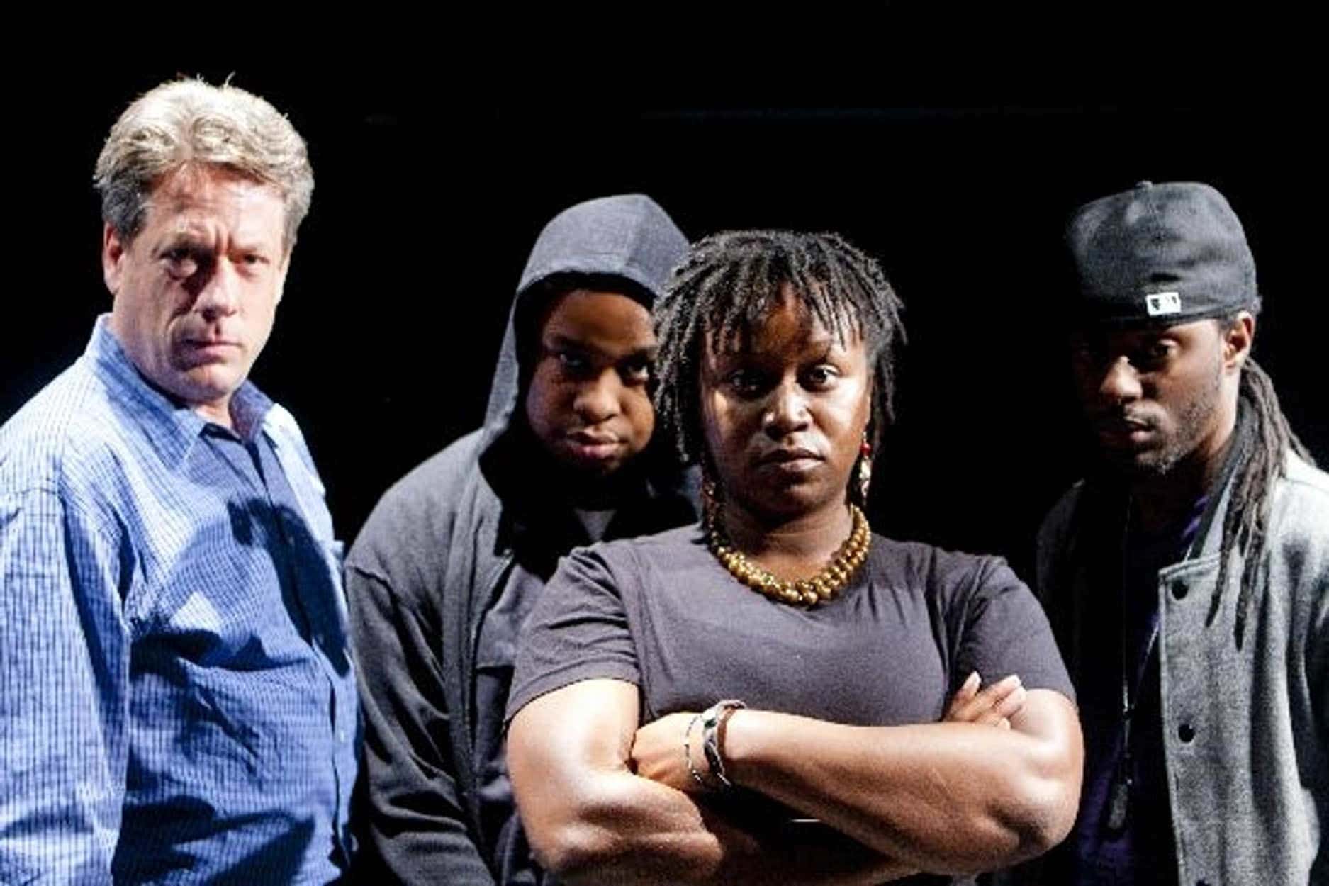 Faruq Hussein- Bey’s The Revolution Will Not Be Televised, directed by Camille Kashaka, is a series of small stories that address the roles of perception and perspective on race, class, sexual preference, and gender inequality. Using recordings from Gil Scott Heron to set the tone of the work and a set of three large mural panels displaying political and popular culture icons designed by Erin Cumbo, the cast and crew creates different environments for powerful slice-of-life type scenes. The cast of four takes on various roles throughout. Kofi Owusu takes on the most diverse set of characters while Jasmine Jackson portrays the evolving role and mentality of the modern female. Todd Clark offers a thought-provoking charecture of an out-of-touch teacher. Another mention should go to Louis E. Davis who moved the audience with his role as a premonition of a soon to be aborted child.