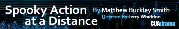 Is it possible for two people be irrevocably connected, regardless of action or distance? Can we ever really be certain about where our lives are headed? And can we ever grow as people without taking chances and committing to a course of action? These are just some of the issues tackled in Spooky Action at a Distance, an intriguing new production by MFA playwright Matthew Buckley Smith at The Catholic University of America.