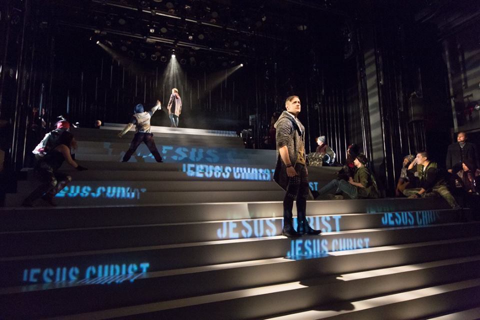 Scheduled to coincide on the calendar with the days historically associated with the last week in the life of Christ, Bristol Riverside Theatre’s spring production of the groundbreaking 1971 rock opera Jesus Christ Superstar, with music by Andrew Lloyd Webber and lyrics by Tim Rice, is relocated from Jerusalem in the 1st century AD to “Here” and “Now.” Directed by Keith Baker, the pacing is fast and the mood and design are full-out post-modern, replete with selfie sticks, cell phones, and protest signs, to relate the timeless theme of socio-political activism in a repressive era to a 21st-century audience.