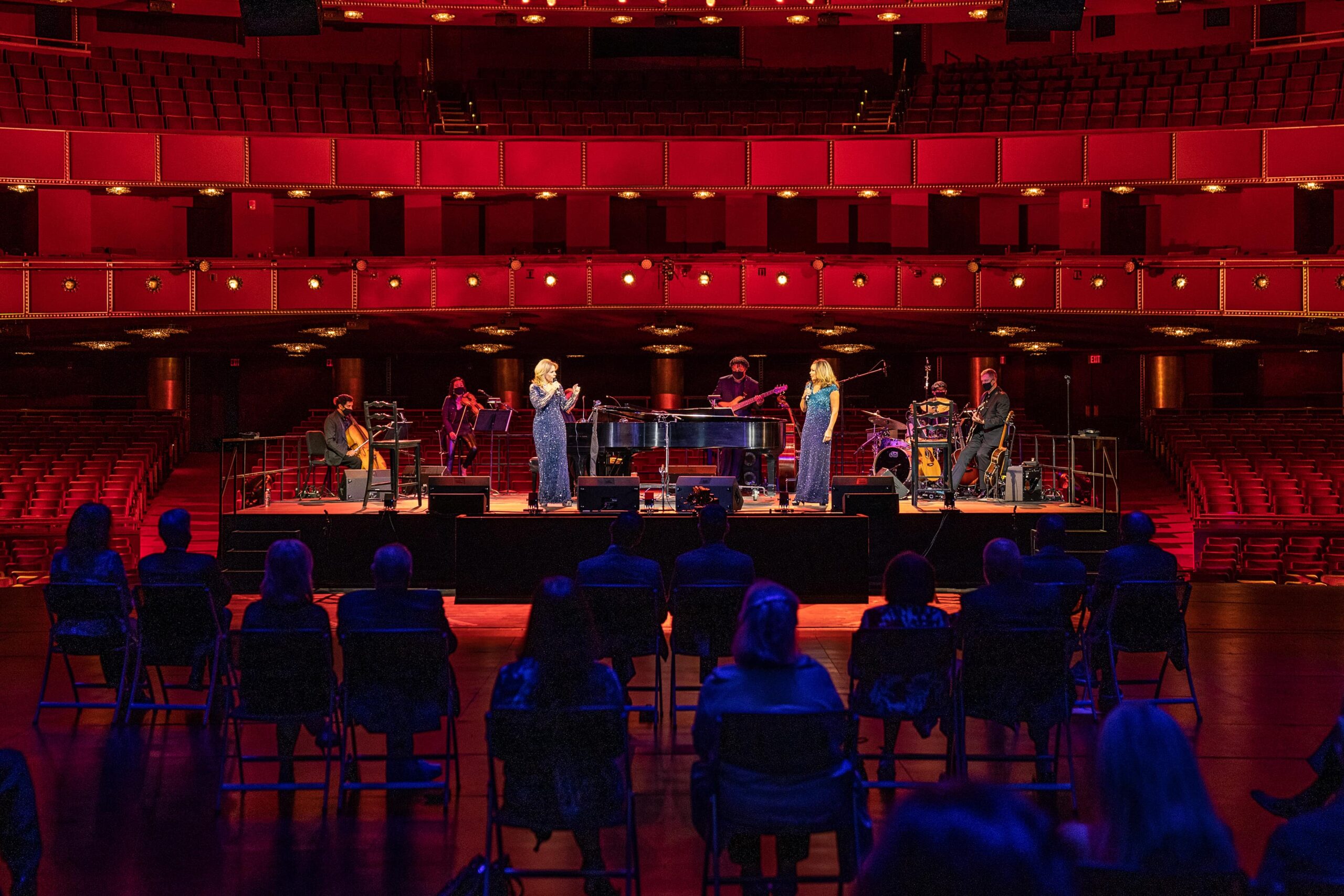 “Repurposed” is definitely the correct word to describe this moving and surreal concert. An audience of forty were invited to watch in person—safely socially distanced, of course—from seating that was set up on stage, facing what would normally be the audience. Fleming and Williams mentioned early on that this view from the stage is what they typically see when performing. However, I doubt their views very often consisted of endless rows of empty seats. The continual flashes of an audience absent from the place they would normally inhabit offered a bittersweet visual reminder that really drove home the reality that this concert was not quite “business as usual.”