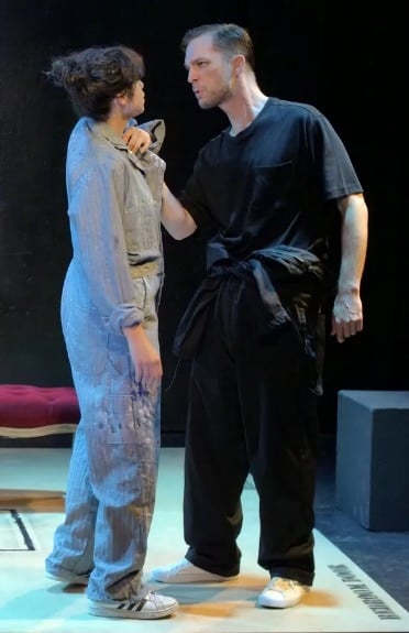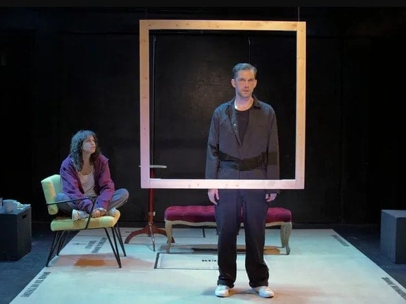 A simple set with minimal furnishings by Paul Smithyman allows the actors to move around the small stage and to change Brynne Oster-Bainnson’s suitably unassuming and paint-spattered costumes easily in front of us, while Zoe Stanton-Savitz’s sound design and lighting by Yang Yu (most notably in the final scene) effectively augment the setting and the moods in this fascinating fusion of art and theater that will leave you thinking about the power and essence of both.