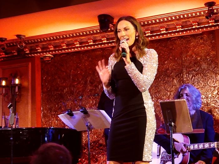 Interspersed between the numbers were their entertaining direct-address introductions and candid commentary on the narrative content of the songs, why each particular selection was chosen, and the impact it had on them. Among the most memorable were the “funny and fearless” Laura’s rendition of “Wives and Lovers” by Burt Bacharach and Hal David, preceded by her vivid account of the sexual harassment she encountered from a producer as an eighteen-year-old auditioning for her first Broadway role in the 1998 revival of The Sound of Music (along with her mother’s strange, but successful, advice on how to escape it without suffering future repercussions); Linda’s heartfelt performance of “New Words” by Maury Yeston, which inspired memories of both her adult daughters and their families consecutively staying with her for much longer than expected during the height of the COVID pandemic, but allowing her precious time she wouldn’t have otherwise had with her young grandchildren; Laura’s touching tribute to the late Chita Rivera with Yeston’s “Unusual Way” from NINE (in which they both starred), paying homage to her graciousness, generosity, and support when Benanti was recuperating from a painful broken neck (the song ended unexpectedly on the date I attended with an improv moment of her rolling on the floor in laughter when a tray of glasses at the supper club came loudly crashing down, then getting up again to finish the final note); and Linda’s spot-on mid-century stylings on the Judy Garland classic “The Man That Got Away,” which, in her youth, she saw the legendary star perform live in concert at DC’s Armory and tried to gift her with what she considered to be a very valuable token of her esteem (but actually wasn’t and didn’t go exactly as planned).