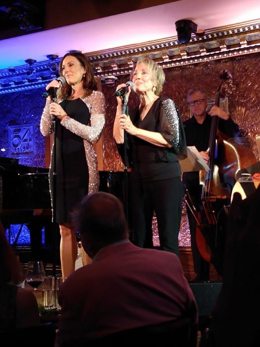 Accompanied by a live four-piece band (Steve Dohle on bass, Ann Klein on guitar, Daniel Glass on drums, and music director Billy Stritch on piano), the pair, dressed in sleek black with accents of glittering silver, began with a personalized rendition of the 1955 hit “Que Sera, Sera” (“What Will Be, Will Be”), in which the lyrics were hilariously changed to reflect the nagging uneasiness and uncertainties of life in our current world, and Laura injected comical nods and head shakes to the questions posed (“Will I be pretty, will I be rich?”). The two then delivered alternating solos on a selection of numbers with special significance to their lives and careers, including 20th-century favorites, songs from the Broadway musicals in which Laura appeared, and original tunes she wrote, all filled with feeling and laughs, soaring high notes and extended long notes, starting with Linda’s dreamy medley of “The Shadow of Your Smile/I Had a Dream about You.”