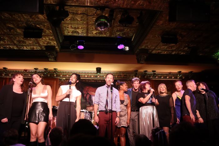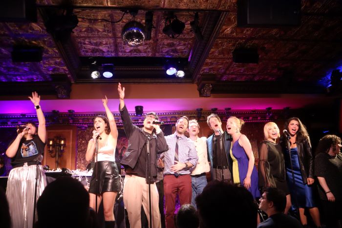 Through it all, the cast moved on and off the stage and around the house, in close contact with the audience, creating an intimate mood, bringing everyone into the stories, and making us feel a part of Iconis’s supremely entertaining and masterful family. And it didn’t end there. Following the blockbuster show, the cast greeted fans in the club, outside on the sidewalk, and at the West Bank Cafe/Laurie Beechman Theatre, where Iconis invited the audience to join them in his unfailing efforts to support the 46-year-old venue (with which he has a long history) and prevent it from closing, as was announced would happen in August. The fundraising campaign (organized by Tom D’Angora) is giving new hope to the popular theater community haunt to keep it afloat; if you’d like to contribute to the cause, click here.