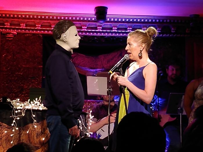 Morse’s rendition of “Andy’s Song,” another film-related piece referencing The 40-Year-Old Virgin rom-com of 2005, had him playing the nerd, tap dancing, and laughably crying to the bouncy music, Shively’s at first humorous then progressively disturbing “Kevin” had him revealing the atrocious deed he would commit to overcome the horrible boredom of life in Brooklyn, and Rubin, feeling stuck in a cage as a Long Island “Amphibian,” had Iconis and the audience clapping and ribbeting along. Rounding out the show were Weiss’s anguished reflections on life in “Haddonfield, 15 Years Later (For Judith),” Brown’s creepy “Sympathy for the Killer,” becoming increasingly freaked out by a scary masked man or two, straight out of a horror film, and Iconis’s newly reworked version of The Hunter S. Thompson Musical’s “Wavesong,” encapsulating the counter-culture figure’s view of what we need (including “weed”), with the stirring sounds of “whoosh, crash.”