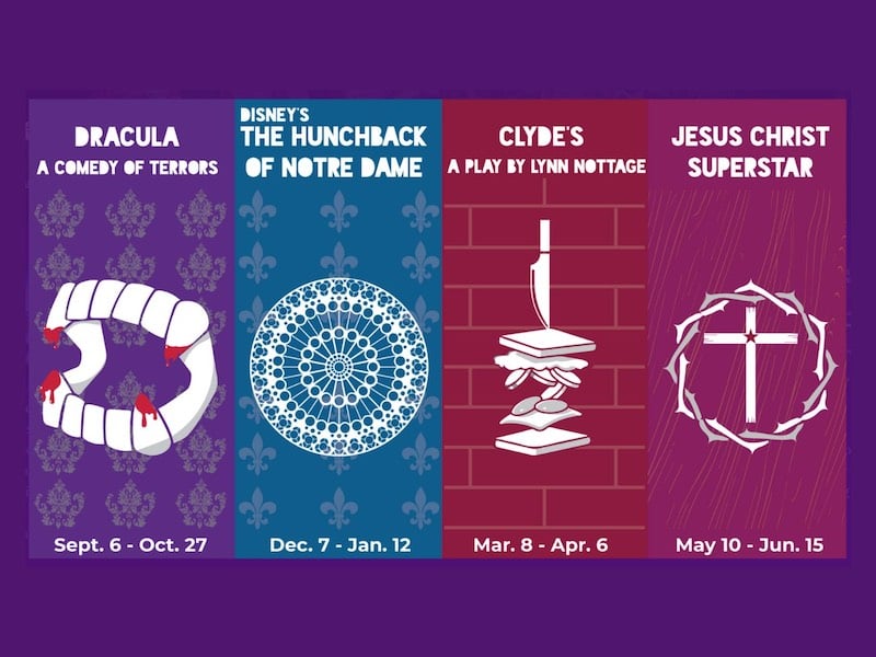 announces its 2024-2025 theater season. From beloved classics to recent Broadway hits, the season features musicals and comedies to entertain audiences of all ages. The season kicks off with Dracula: A Comedy of Terrors, followed by Disney’s The Hunchback of Notre Dame, Clyde’s, and Jesus Christ Superstar. Shows run on Fridays and Saturdays at 8 p.m. and on Sundays at 2 and 4 p.m. Tickets are on sale now and range from $25 to