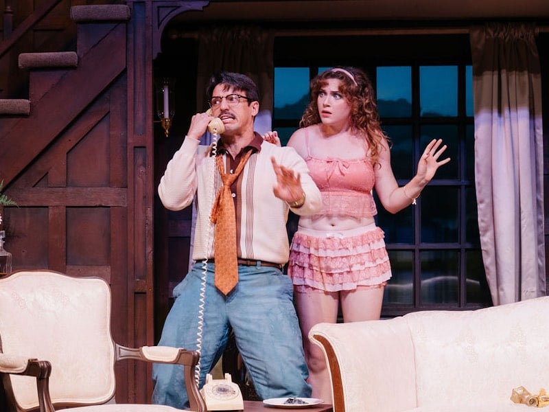 Ryan Sellers and Brigid Wallace Harper in ‘Noises Off.’ Photo by Cameron Whitman.