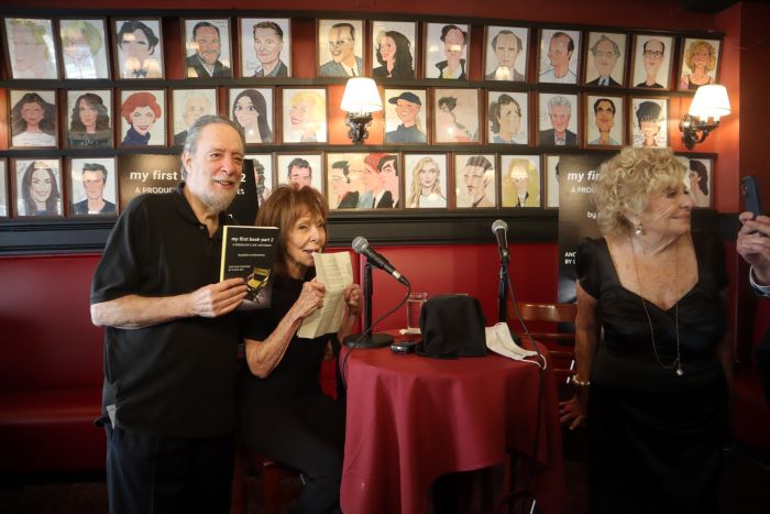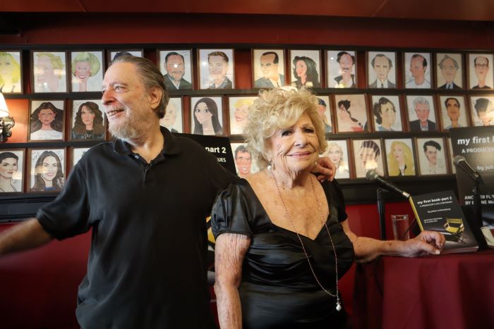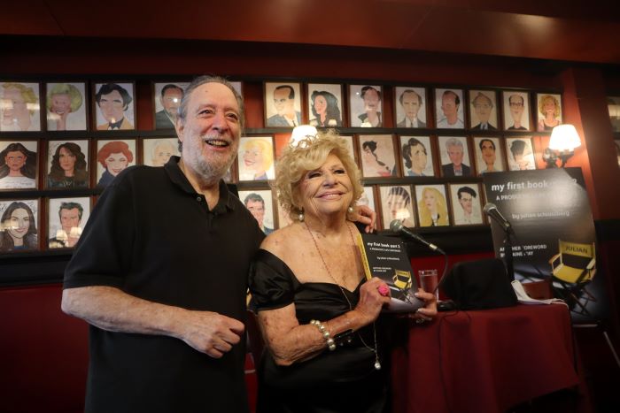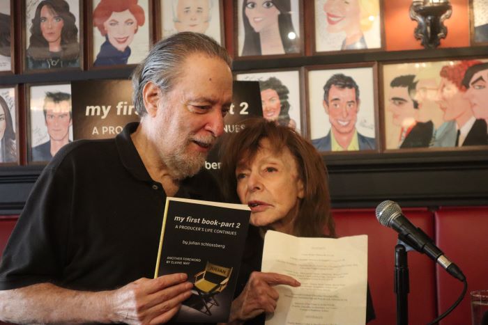 At a private NYC release event at Sardi’s on Tuesday, August 13, starting at 1 pm, long-time stage and screen producer, broadcaster, podcaster, and author Julian Schlossberg launched the second volume of his memoir, My First Book – Part 2, A Producer’s Life Continues, a follow-up to Try Not to Hold It Against Me, published in 2023. Joined by Tony and Oscar winner Elaine May and special guest Renée Taylor, the event featured Schlossberg reading brief excerpts from the book and discussing it with May, who wrote the foreword, admitted she was nervous about doing the interview, encouraged everyone to buy the book, and then turned the questions over to Schlossberg and the audience.