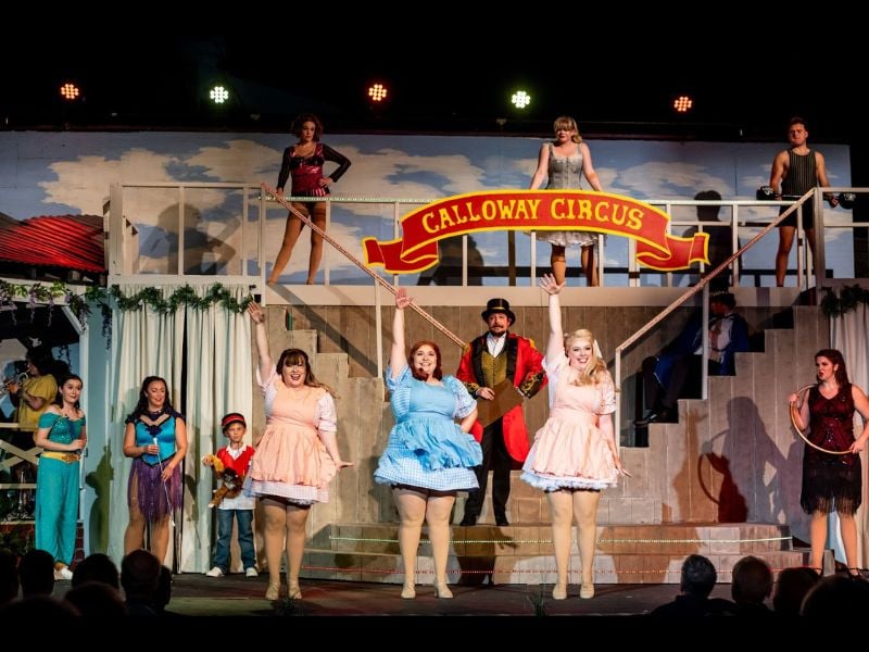 Annapolis Summer Garden Theatre’s production of Big Fish is a colorful, fantastical testament to the power of stories. Based on the novel by Daniel Wallace and the Tim Burton–directed movie, it follows a young man as he tries to learn about his father, who tells amazing, hard-to-believe tales about his life. With its book by John August and music and lyrics by Andrew Lippa, this production is directed by Leigh K. Rawls, with Paige Rammelkamp as music director and conductor and Billy Luzier and Elda Trombley as choreographers. It is a lovely show to end the company’s 58th season.
