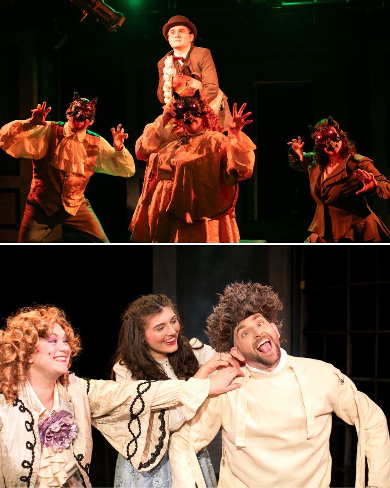 Adam R. Adkins is an incredibly talented costume-changer, improviser, and comic: as Renfield, Dracula’s insect-eating sidekick, Adkins is a comedic tour de force, playing dramatically different characters with flair, assurance, and incredible talent. Jolene Vettese is a great Jean Van Helsing and Mina, excellently occupying the role of foil to some of the nonsense crashing down around her, and being the nonsense in those roles respectively.