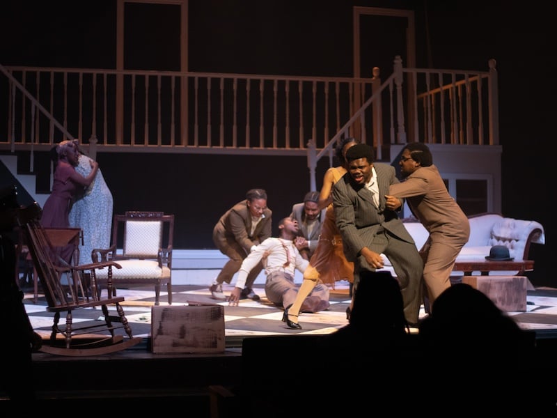 You might expect a play from the 1930s to have language that is pompous or stilted, outmoded, or overly decorative. But the language of Big White Fog is rigorous, precise, and almost musical. When arguments erupted and simultaneous conversations overlapped, it was like listening to musical instruments playing counterpoint with each other in duets, trios, quartets, and at times a full orchestra on display. The cast of 15 student performers ate it up and — as the current saying goes — left no crumbs.