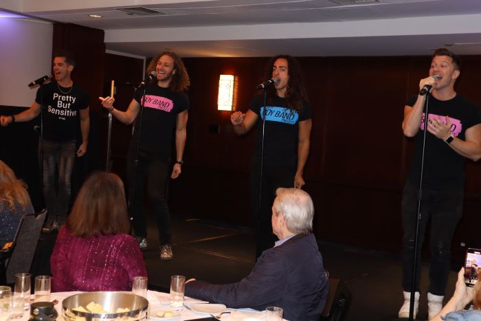 Now in its 34th year, the Jane Elissa Extravaganza – an annual benefit for the Jane Elissa Endowment Fund for Leukemia/Lymphoma and Cancer Research, founded in 1989, when her mother was diagnosed with leukemia – was held on Monday, November 18, in the 9th-floor ballroom of the Times Square Marriott Marquis. The intimate evening with the stars of NYC and beyond, hosted by the ever-engaging two-time Tony-winning producer, singer, and actor Dale Badway, featured blockbuster performances by The Boy Band Project (Travis Nesbitt, Sam Harvey, Nic Metcalf, and Jonah Mayor), Megan Thomas, Cassie Blanchette, Ashlyn Combs, Diana Huey, Badway, and others, who donated their talents to support this important cause. The entertainment also included songs from three new shows coming soon to the New York stage: Dear Ruth; The Monarch Butterfly; and Dark of the Moon.