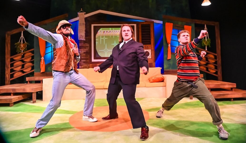Jordan Essex (Leroy), Jackson Saunders (Man in Suit), and Jimmy Bartlebaugh (Boy) in ‘Dragons Love Tacos.’ Photo by Alan Kayanan.