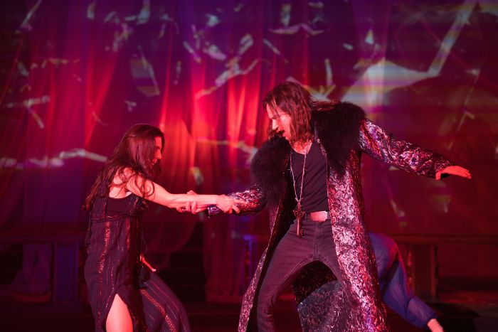 Jenna Rubaii brings her empathy and expressiveness to the lead character, manifesting the range of profound feelings she experiences through each sector and interactive vision, with her powerhouse vocals (the eleven-o’clock number “Fearless” is a blockbuster), agile movement, and emotive face and body language. The featured cast of five – Fanai as The Weaver, Madeline Serrano as The Child, Fabricio Seraphin as The Dark Horse, Maya Days as The Shaman, and Constantine Maroulis as The Shadow – is equally outstanding, all embodying the intrinsic nature of their roles with archetypal characterizations and commanding the stage with their exceptional talents and passionate deliveries of the show’s 23 didactic musical numbers (music and lyrics by Fanai) in their formidable voices (including The Shaman and The Shadow asking Avalona in song, “Whatchagonnachoose”).