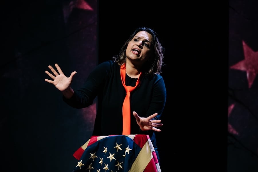 At points, a few of the characters that Shetty inhabits get lost in the shuffle of history and information overload. The courtroom moments leave one wondering which side is arguing for who and what. The satire could have been sharper with her portrayal of the 45th, now 47th, president — though these days, he takes the oxygen out of the room even in satire. However, when the play pulls into the personal, into the impact on those who were there as witnesses from the community, into her own sense of anger and outrage, the experience is effectively immersive.