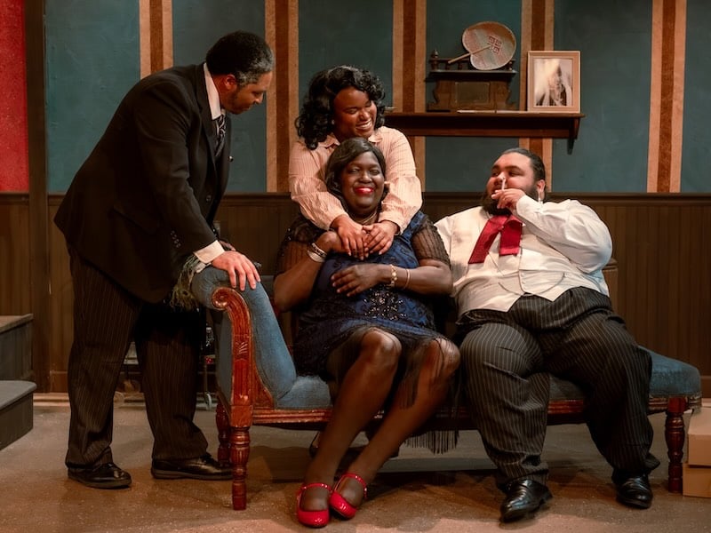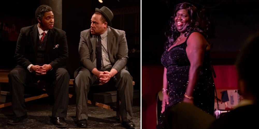 The rest of the performers are up to the task in relating the play’s significant cultural history while on their own journeys. Cainan Asher Grier as Guy is a star-struck, sashaying wonder as he dreams and fantasizes about sewing costumes for his adored Josephine Baker. Belittled and persecuted for his proclivities and orientation, Guy views Baker as his ultimate vindication, and ships unsolicited gowns to her in Paris to hopefully get on her radar. Kudos to costume designer Linda Swann, who works wonders with the full range of attire from frumpy to dazzling, and work clothes to top hats and tux tails. After yet another love affair gone wrong, Angel arrives at the tenement with literally just the clothes on her back, and Guy befriends and shelters her as a fellow artiste. Iyanu Bishop’s Delia is a churchgoing, prim, and proper neighbor who tries to convince Angel to learn typing for respectable, steady work instead of her fly-by-night jazz singing gigs that have dried up in the Depression. While Delia reveres the Reverends Powell, she’s also a proponent of Margaret Sanger in advocating for women having control of their bodies to plan their pregnancies, a dangerous concept long before Planned Parenthood.