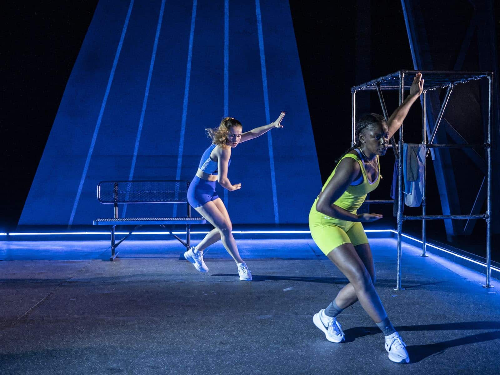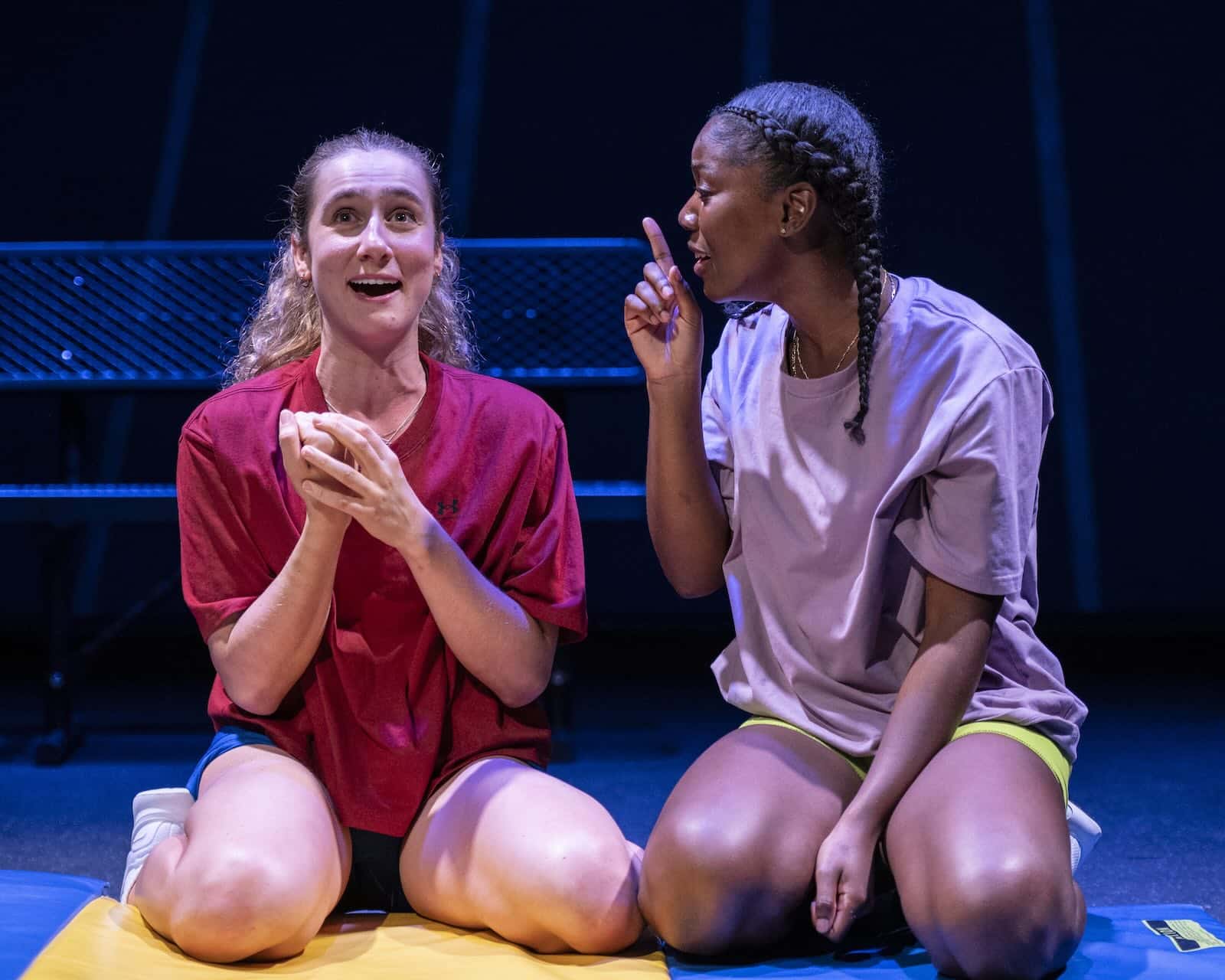 Directed by 1st Stage associate artistic director Deidra LaWan Starnes, the two-actor play focuses on two female athletes, both training and competing in the elite world of track and field in the United Kingdom. Mahkai Dominique plays Ann, who is new to the training center and who was recruited for her high potential as an athlete. Ann is also Black. She meets Sophie, played by Camille Pivetta, who is an established athlete who exudes confidence and is white. Over the course of the 90-minute drama, race and gender roles are examined as the pair of athletes grow and bond over their shared experiences. The playwright does not shy away from loaded topics but presents them within the fabric of the realistic dialogue between Ann and Sophie.