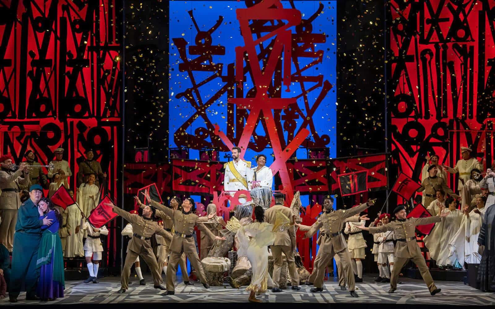 It’s hard to believe that Washington National Opera is celebrating its 70th anniversary. For its season opening, Artistic Director Francesca Zambello has brought back her 2017 production of arguably the grandest of grand operas — Giuseppe Verdi’s Aida, best known for its triumphal scene often staged with live elephants. No elephants in this production, folks, but with its massive chorus, a children’s chorus, and integrated ballet numbers by choreographer Jessica Lang, there is plenty of spectacle. Yet Zambello insists the work is a chamber opera, and, truly, its best moments feel as if a camera has zoomed in to capture the inner turmoil of the three main characters, caught in an eternal triangle and torn between passion and duty.
