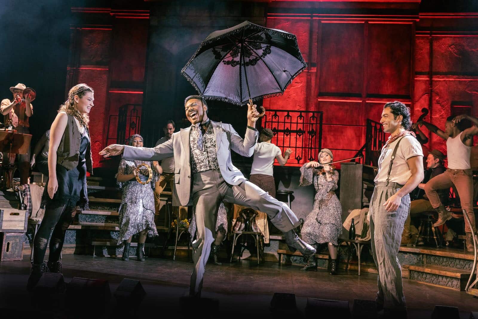 The acclaimed soundtrack from Anaïs Mitchell seems to conjure inspiration from Afro-Caribbean, Latin, and Eastern European musical stylings, creating a lively, soulful, yet eerily dark score that combines jazz, blues, folk, and indie pop. The soundtrack rolls smoothly from one song to the next, mirroring the show’s steam-train metaphor, always in motion. The songs flow together but can also stand alone as unique tracks. For instance, I can’t seem to get “Chant” out of my head — the dark, rhythmic jazz/pop number incorporating solo moments from nearly the entire cast. The composition’s eclectic mix of instruments is practically a character in its own right, with the band embedded on stage and even incorporated into various plot elements. The intimate yet impressive band dazzles under the direction of Cole P. Abod, who in addition to serving as music director also plays piano.