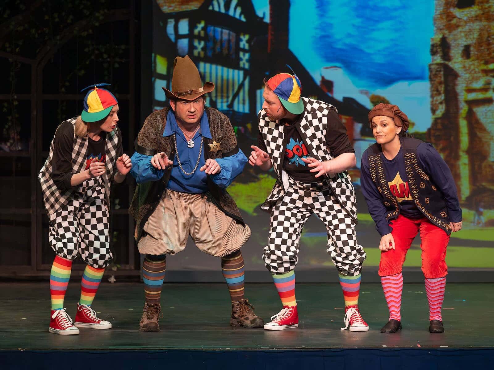 There is truly something for everyone in this production. Also listen for interpolated local references, another characteristic of panto.