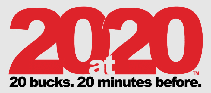Please note that some of the venues may add a facility fee of $2-3 to each $20 ticket, bringing the total cost to $22-23 per ticket. All tickets are subject to availability; restrictions may apply. The offer is valid only at the box office on the day of the performance, twenty minutes prior to curtain time; it is not valid on prior sales, cannot be combined with other offers, and may be revoked at any time. For more information about the shows, dates, and times, visit the 20at20 website.