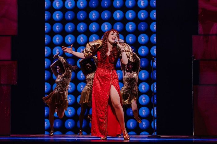 The tone of the show also moves back and forth from comedy to drama, from the feisty Cee Cee’s juvenile and repetitive foul language, sexual innuendo, and pushy ambition, and the sophisticated Bertie’s naiveté and inhibitions, to her terminal illness, her bestie’s response, and her decision about who should get custody of her young daughter Nina (Harper Burns). And the segments of on-stage performances throughout Cee Cee’s ever-burgeoning fame follow suit, from the lively little girl’s exuberant song-and-dance routines and the ebullient appearances with sparkling back-up dancers by the celebrated adult, to her sincere recognition of all that Bertie did for her and meant to her in the smash-hit showstopping finale.